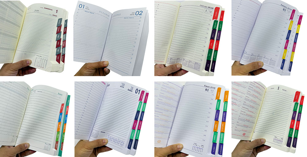 De indre sider er præsenteret på tysk, med personlige oplysninger, kalender, månedlig planlægning, ugens numre, tidslinjehorisontale sider, tyske helligdage og tyske måneder osv., Der passer til tyske brugernes vaner og klart planlægger daglige skemaer. Side Month -indekset giver den hurtige placering i måneden og let søgning. Vores tyske notesbog kombinerer praktiske planlægningsfunktioner med smukt udseende, der er egnet til daglige poster og tidsstyring, hvad enten det bruges i kontor- eller livsscenarier, det er meget velegnet.